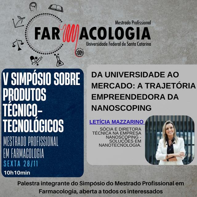 A palestra faz parte do programa do V Simpósio sobre produtos técnico-tecnológicos e é aberta a todos interessados