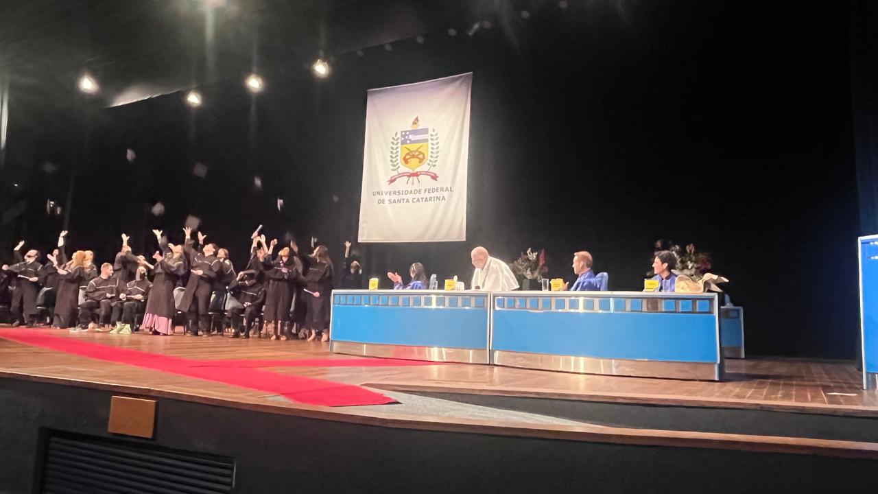 No dia 27 de agosto de 2025, às 15h, no Auditório Guarapuvu – Centro de Cultura e Eventos da UFSC, realizou-se a solenidade de colação de grau da Turma Niède Guidon, formandos 2025.1 do curso de Ciências Biológicas.